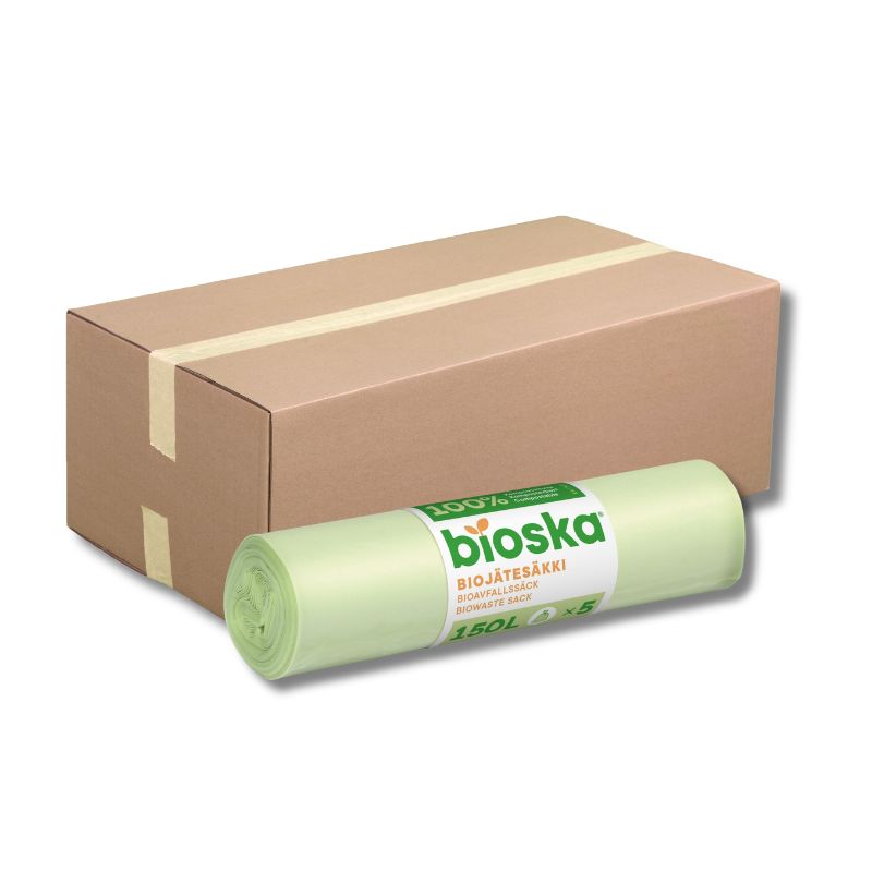 Bioska Biojätepussi 150L ont kotimainen, biohajoava ja kompostoituva ratkaisu sujuvaan biojätteen lajitteluun. Bioska-pussit soveltuvat erinomaisesti kaikenlaisen biojätteen keräämiseen niin keittiössä kuin roskakatoksessakin. Kätevät ja helppokäyttöiset tuotteet tekevät arjesta siistimpää ja ympäristöystävällisempää.