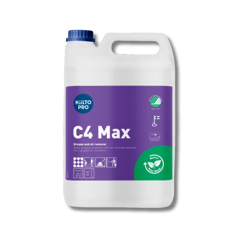 Kiilto Pro C4 Max on tehokas puhdistusaine öljy- ja rasvalian irrottamiseen emäksisiä aineita kestäviltä pinnoilta. Se on suunniteltu erityisesti vaativiin olosuhteisiin, joissa tarvitaan luotettavaa ja suorituskykyistä pesuratkaisua. Tuote soveltuu erinomaisesti esimerkiksi ammattikeittiöihin, ostos- ja kauppakeskuksiin, korjaamoihin sekä erilaisiin tuotantolaitoksiin.